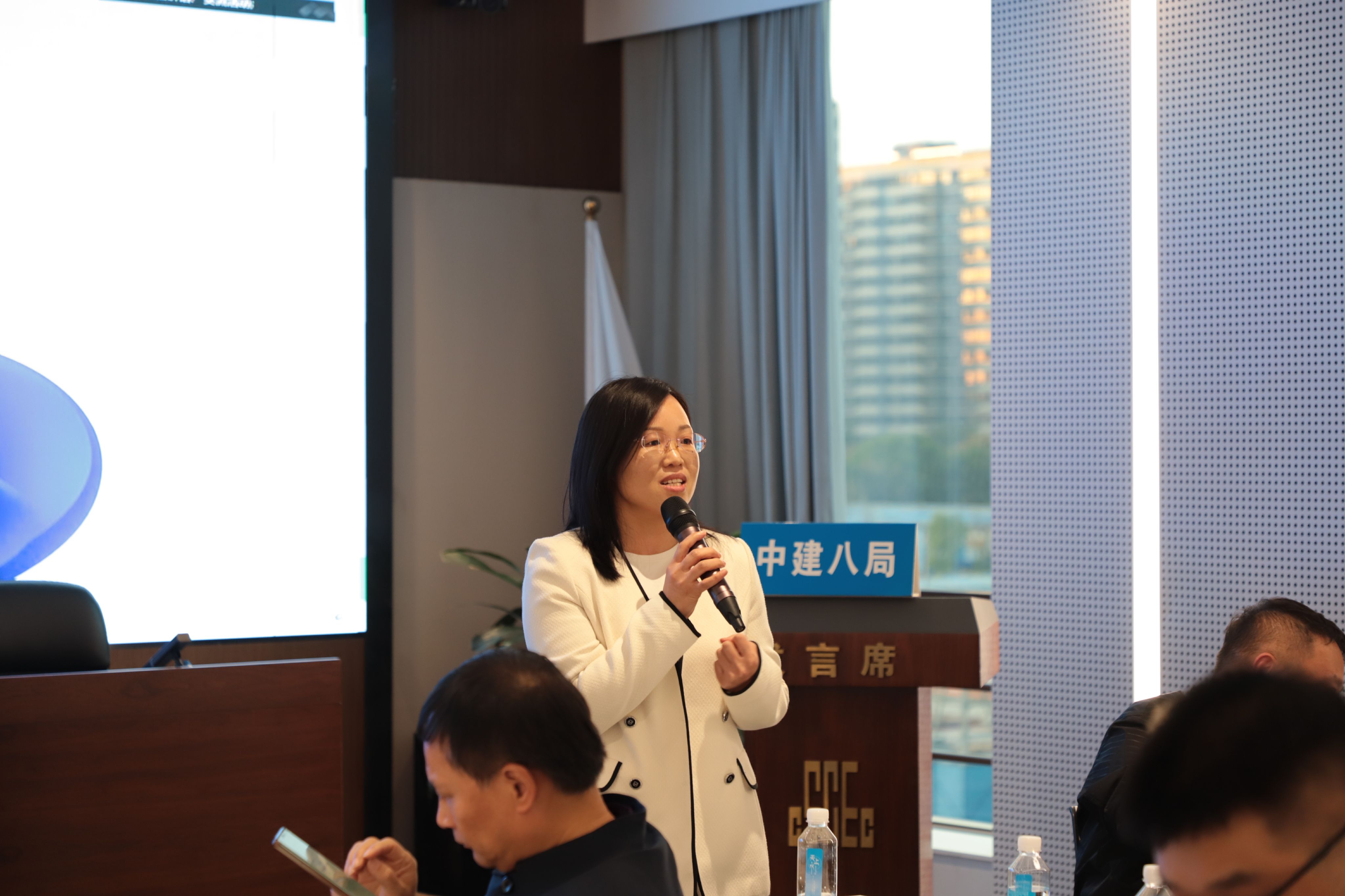 观摩结束后,双方进入合作交流环节。该环节由中建八局三公司工程研究院负责人徐晓辉主持。中建八局三公司总工程师陈刚作专题报告,分享了行业发展趋势洞察与企业创新实践经验。与会人员围绕建筑科技前沿与校企协同机制展开深入讨论,一致认为应加强资源共享与项目协作,携手构建建筑行业创新发展新格局。