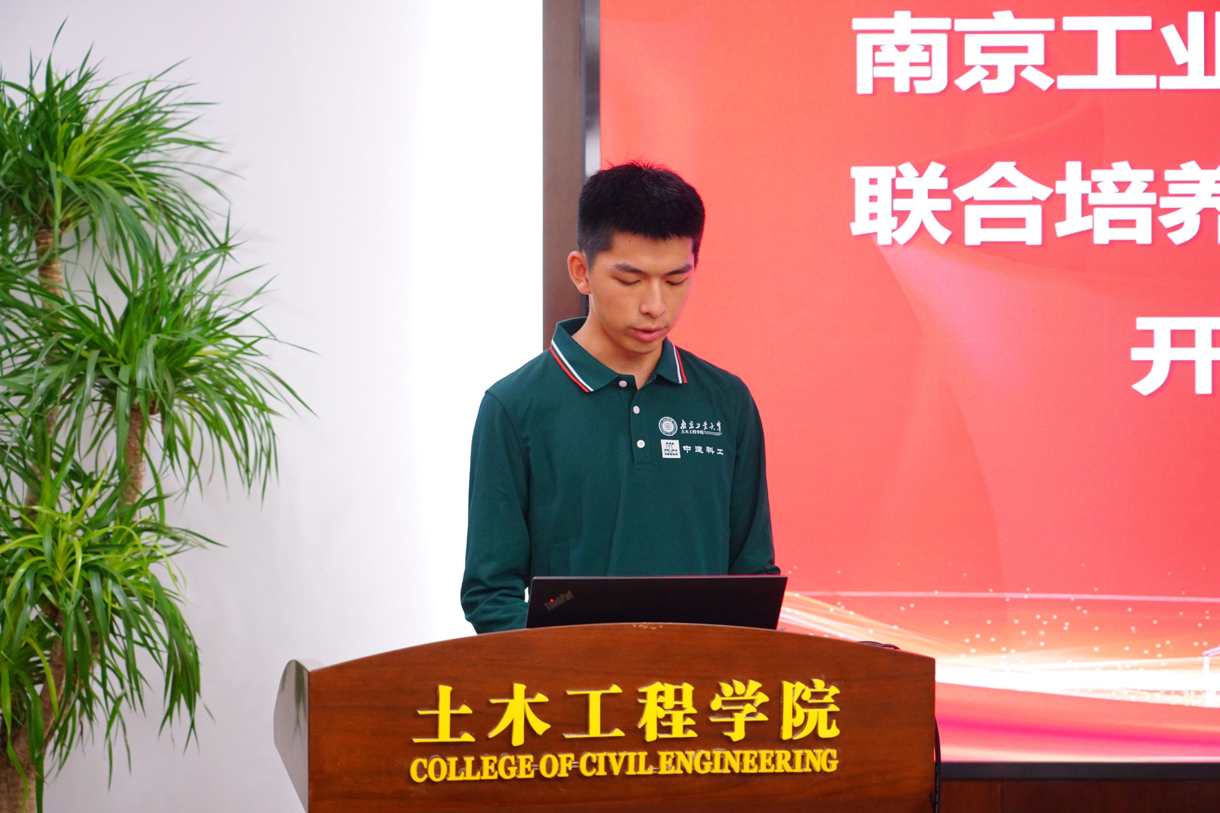 企业导师代表张耀林总工结合中建科工在智能建造领域的技术积累,承诺开放重点工程项目资源,助力学生锤炼工程实战能力。校内导师代表朱思遥表示,将融合学科前沿与企业需求,构建“理论 + 实践”双驱动教学体系。卓工班学生代表在发言中表示,将以“追求卓越、技能报国”为目标,努力成长为兼具创新思维与实践能力的智建人才。